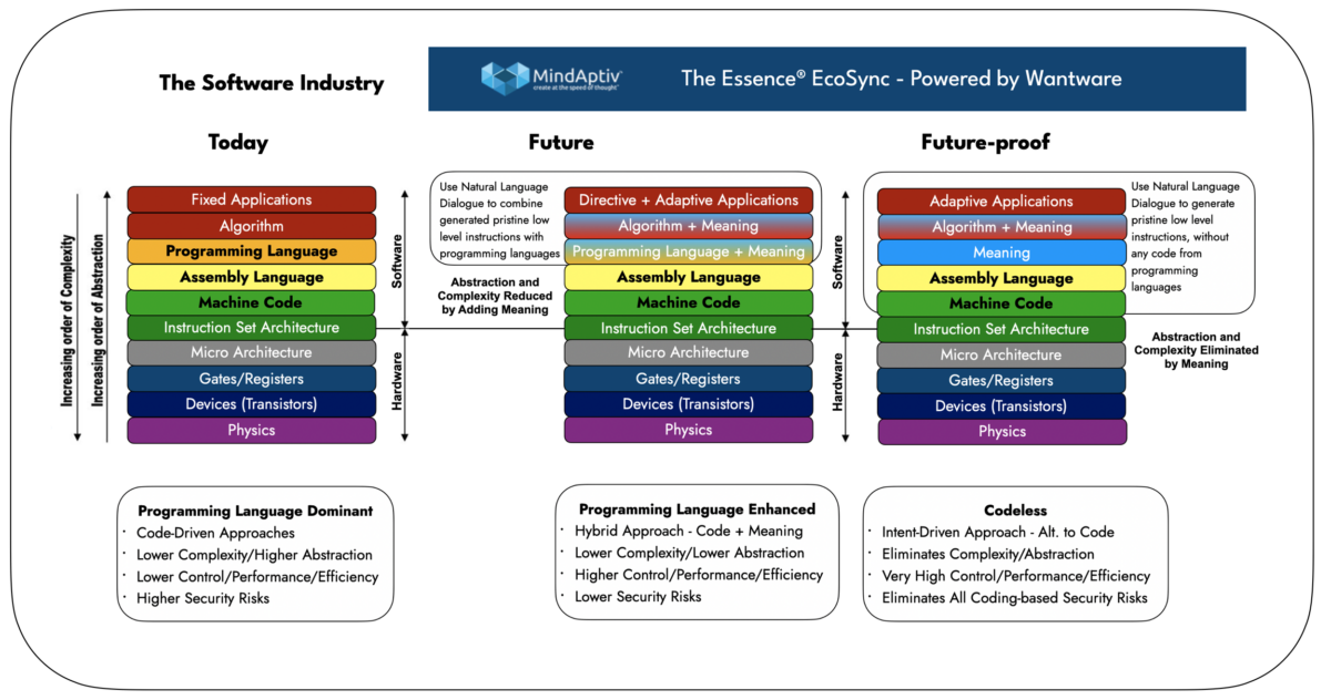 Essence, backed by patented (see section 7.4 to learn more about our patents) innovations and over a decade of R&D, goes beyond conventional software. It redefines the foundational structure of computing by replacing brittle code stacks with adaptive systems structured by meaning. This positions it not just as a software innovation—but as a fundamental advance in how systems are built, secured, and evolved.