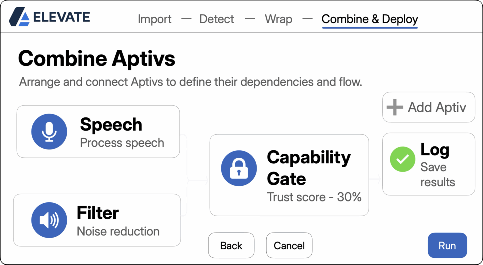 Prototype and deliver responsive, resilient systems with no dependency on monolithic codebases. Aptivs make it easy to express functionality in natural language, visualize behavior, and adapt in real-time.