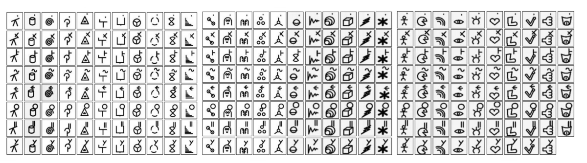 - Organized As: 32 semantic groups × 8 glyphs per group