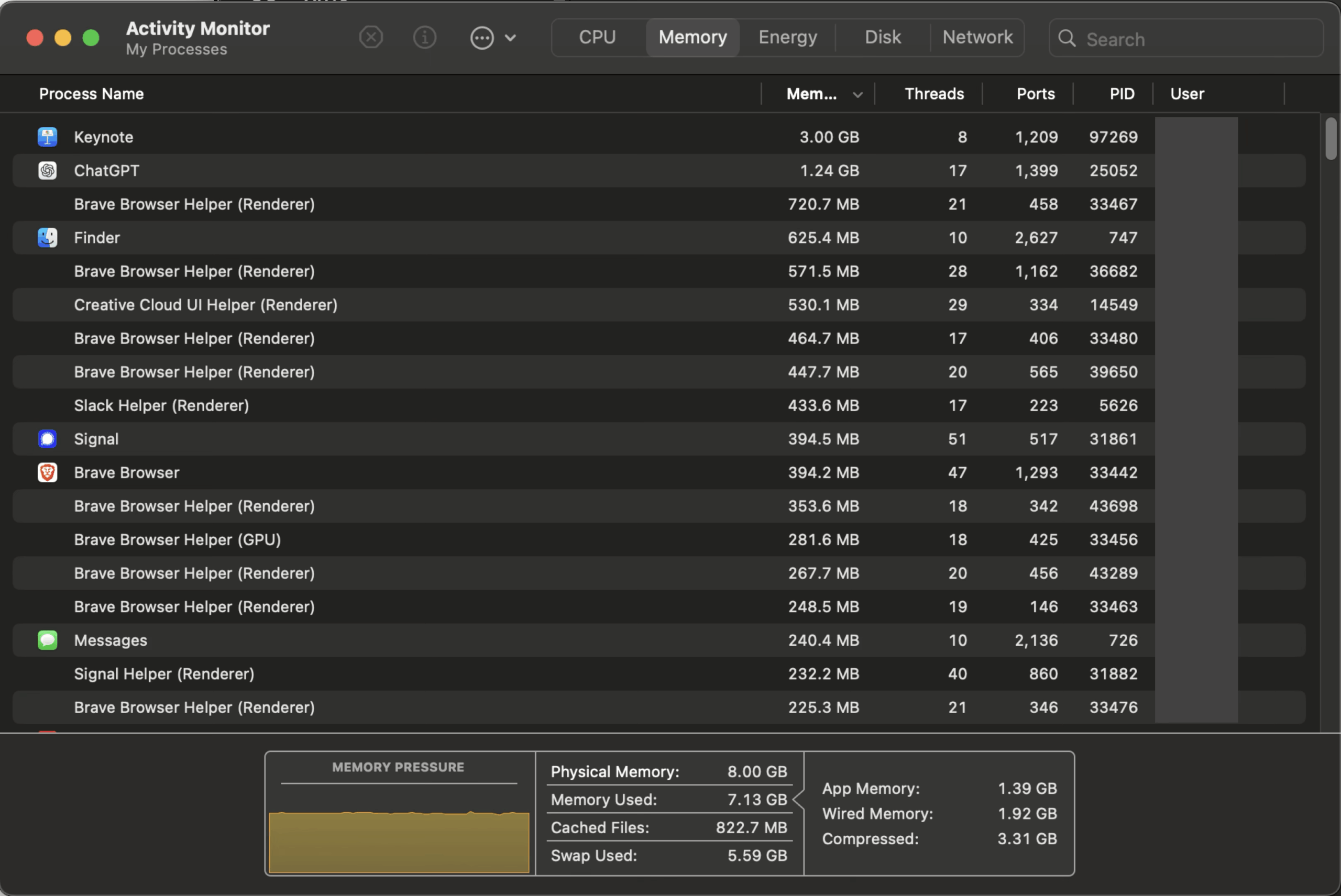 - Figure 1e: Mac Activity Monitor showing memory usage