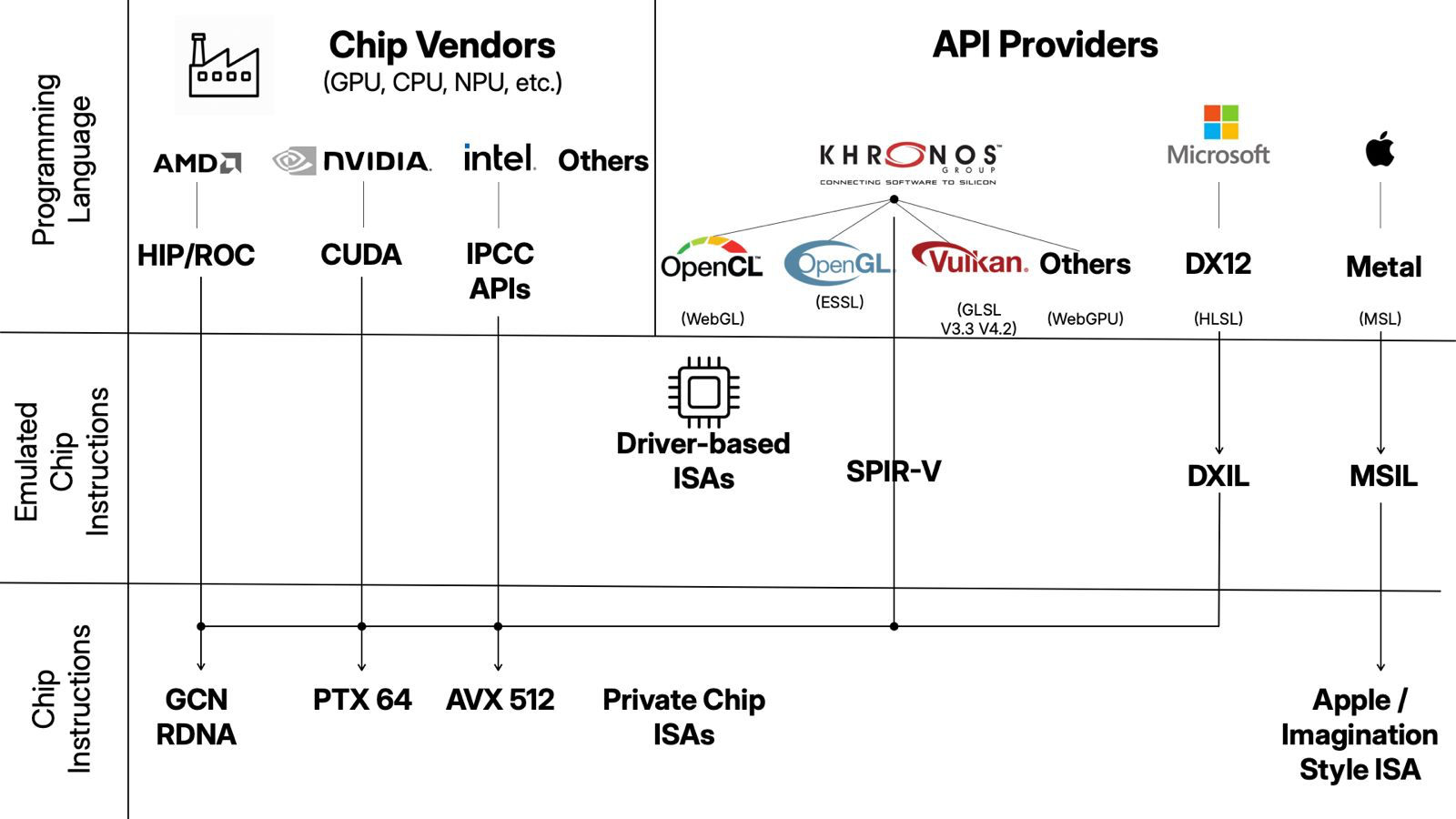 This complex path introduces multiple points of inefficiency, delay, and incompatibility. While the introduction of SPIR-V by the Khronos Group has helped unify intermediate representations—especially for Vulkan and OpenCL—developers must still navigate a fragmented toolchain bound to specific languages, platforms, and ISAs (Instruction Set Architectures).