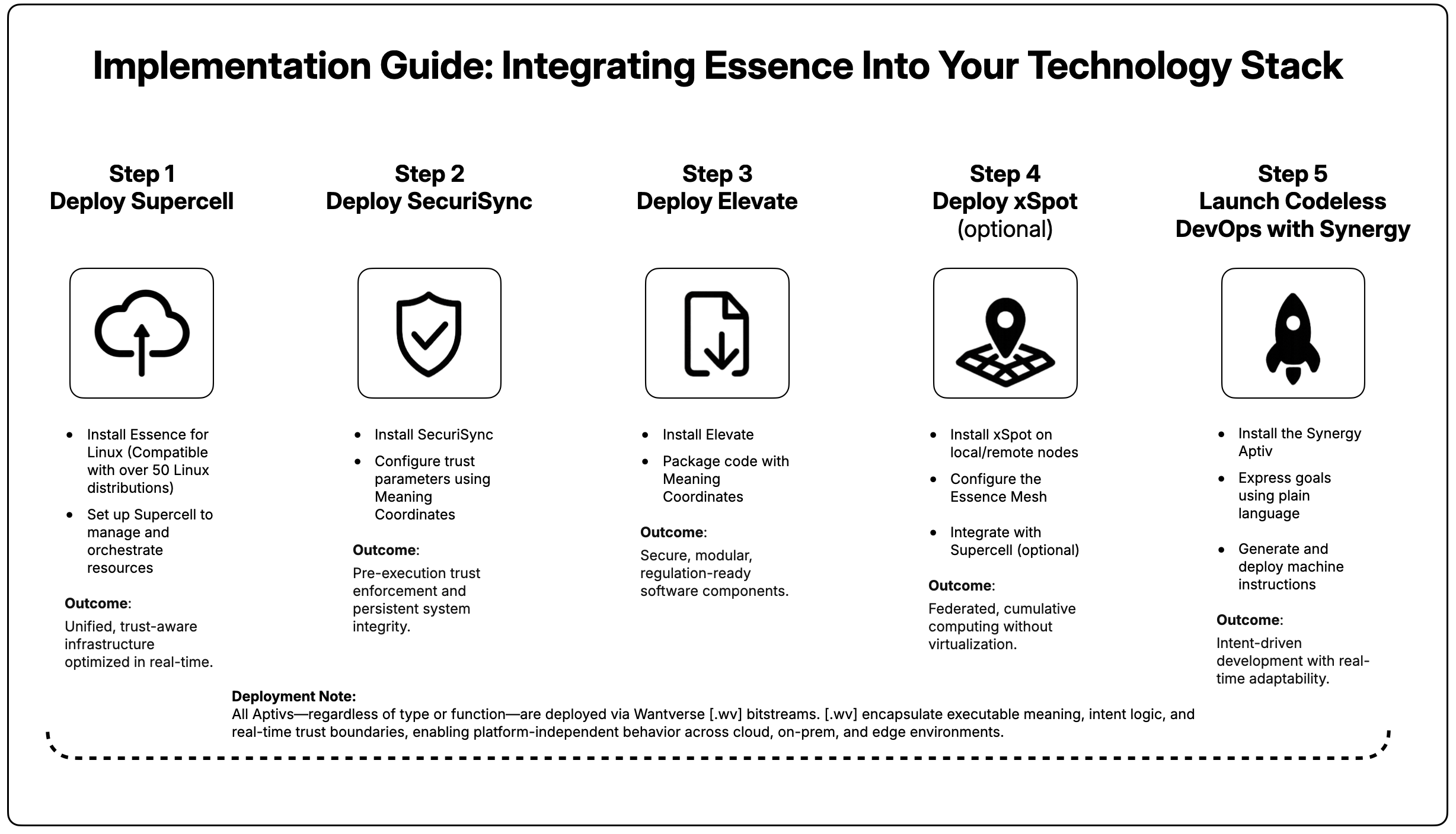Full deployment of [.wv] streams and the complete Wantware stack will follow once Synergy is finalized. Synergy is required to complete the deployable versions of Aptivs like SecuriSync and StreamWeave, and wantverses like Elevate. These components, delivered as modular [.wv] streams, enable secure, adaptive, and distributed execution across cloud, edge, and on-prem environments.